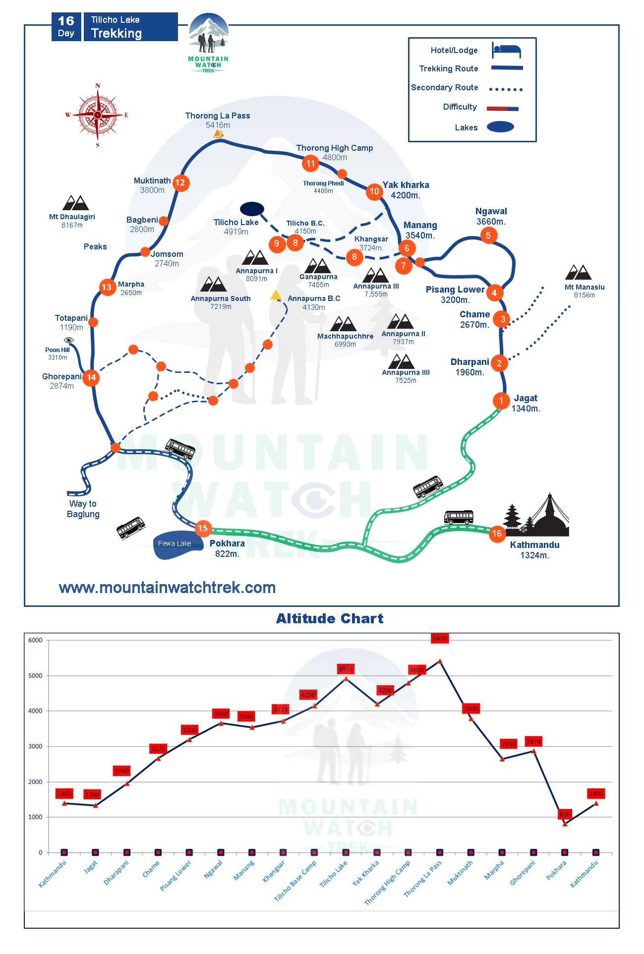 Do you know that the Tilicho Lake Annapurna Circuit Trek is one of the longest trekking routes of Nepal? Yes, it is one of the longest as well as scenic trekking trips to do in Nepal. The travel planners of The Mountain Watch Trek are extremely pleased to provide the most updated and cost-effective trekking package for all the trekking enthusiasts of the world. Our itinerary possesses quality services, impeccable hospitality, and more chances of interaction with the locals. All the tea houses that we choose are operated by the locals. Therefore, traveling with us means that you will be getting authentic information about landscape, culture, and traditions.